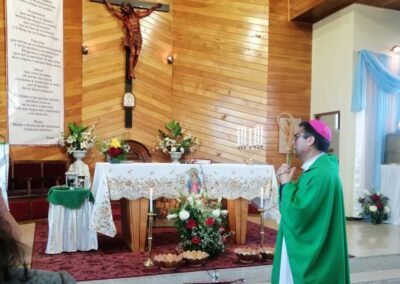 La comunidad Nuestra señora de las Nieves celebró 29 años de su fundación con una eucaristía presidida por el padre obispo Oscar. Participaron representantes de las comunidades de la Parroquia Cristo Obrero, los coordinadores parroquiales, representantes de las organizaciones sociales de la Villa como: Clubes de Adulto Mayor («Villa las Nieves», «Generación de Oro» y «Los Fantásticos»), Junta de Vecinos N°41, Agrupación de Amigos «Copos de Nieve», Directora del Cesfan Thomas Fenton y vecinos del sector. Fue una hermosa celebración y, posterior, compartir en el salón multiuso «Diácono Claudio Gamboa Astorga» (Erika Soto Passek (Integrante del Consejo de la comunidad).