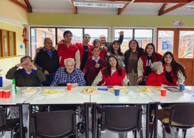 Con entusiasmo y corazones dispuestos a regalar sonrisas, los jóvenes de las Comunidades Apostólicas Salesianas (CAS) del Liceo Salesiano Monseñor Fagnano llevaron el espíritu de Don Bosco a distintos rincones de Puerto Natales, compartiendo momentos de servicio y fraternidad. El viernes 1 de agosto, los jóvenes realizaron un Café Fraterno en pleno centro de la ciudad, llevando alegría y cercanía a los transeúntes. Acompañados por el querido Don Bosco corpóreo, ofrecieron café calentito, dulcecitos y un mensaje salesiano que abrigó corazones en medio del frío invierno. Esta hermosa iniciativa, que se repite mes a mes, que recuerda que ser salesiano es llevar alegría, fe y esperanza a quienes más lo necesitan. La experiencia continuó el lunes 4 de agosto, cuando los jóvenes de las CAS visitaron el ELEAM (Establecimiento de Larga Estadía para Adultos Mayores). Allí compartieron una jornada cargada de afecto y fraternidad: jugaron bingo, entregaron premios, disfrutaron de una rica once y, sobre todo, brindaron compañía y cercanía a los residentes, quienes valoraron cada gesto con sonrisas y gratitud.