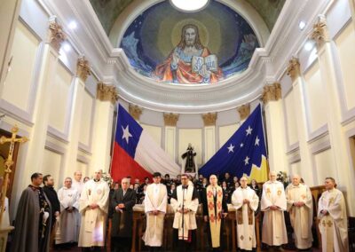 Tras la homilía, los pastores de las iglesias hermanas oraron al Señor pidiendo por las autoridades, la familia y la patria y, unidos a la cultura religiosa popular, don Francisco Abarzúa Lagos nos invitó a la oración con rogativas por la patria.