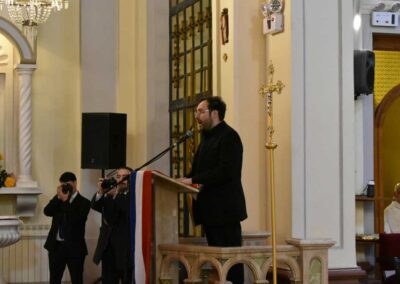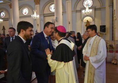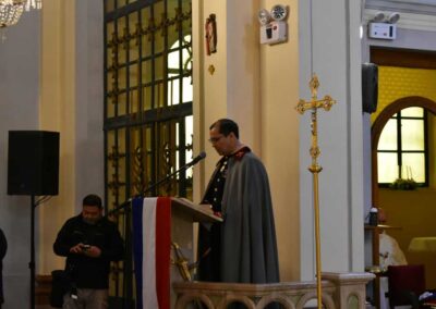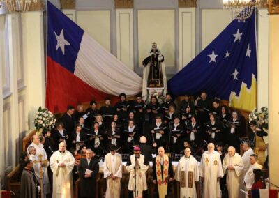 En su homilía, el padre obispo Óscar llamó a comprender Chile como “nuestra casa común, tanto para los nacidos en esta tierra como para quienes han llegado buscando un futuro mejor”. Advirtió que “la polarización en la política debilita la democracia” y que el país requiere acuerdos amplios entre los distintos sectores para superar la crisis social y política, recordó que la “política no debe ser un campo de batalla” y condenó la violencia política en redes sociales y los discursos de odio.